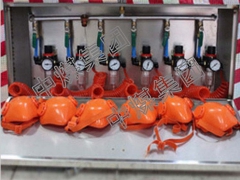 ZYJ压风供水自救装置安装时,先将减压阀压力调至最低,即用随设备配的内六角板手,拧开减压阀顶端螺帽,逆时针方向调到底,压力表显示为零。然后接好井下供水管道。顺时针方向缓缓调整减压阀,待压力表指针指向(0.5Mpa)时,停止调整,并拧上调节孔螺帽,再逐个打开每个供水阀门,看每个供水管是否有足够清洁水流出。若供水正常,请关上供水装置箱门,插好箱门插销。如在紧急情况下,井下人员需要施救饮水时,则打开箱门,再打开相应出水口的阀门,就可以直接喝上干净的水,以等待及时的救援。注意:不能猛力拉拽!