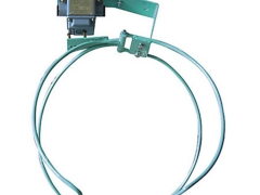 KG5009风筒风量开关主要由一个LA10-1S型转换开关和两个彼此可张合的弓形夹组成。使用时,将它悬挂在风筒上方的吊环上,使弓形夹上面夹住风筒。当风筒内风量充足时,风筒内的风压使得弓形夹保持张开状态,弓形夹上的控制螺栓压下转换开关的按钮,使得转换开关的常闭触点断开,当风筒内的风压下降时,两个弓形夹会因自身的重量而合拢,此时控制螺栓便松开转换开关的按钮,其常闭触点闭合,将转换开关的这一常闭触点信号引线与FDZB-1型风电甲烷闭锁装置连接,便可进行风筒工作状态的遥测,并实现以下功能:当风筒中无风或风量低于预定值时,巷道总开关断电并闭锁。